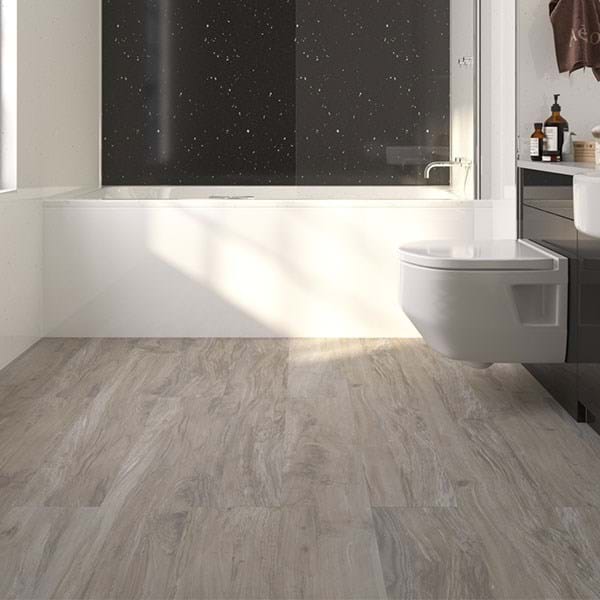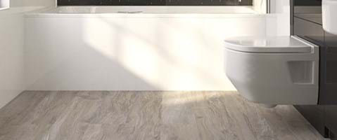 De vinylvloeren voor de badkamer van Multipanel bieden de authentieke look van tegels, steen en hout. De getextureerde messing- en groeftegels en planken zijn warmer en stiller onder de voeten dan stenen of keramische tegels. De waterbestendige vloeren uit het Click-assortiment hebben een 0,5 mm dikke slijtlaag van commerciële kwaliteit en zijn gecoat met keramische kralen voor een antislip, duurzame afwerking die er jarenlang goed uitziet. De in elkaar grijpende plaatsing is bovendien gemakkelijk. Geen lijm of ondervloer vereist. Klik de panelen of tegels eenvoudig op hun plaats, en klaar is kees! De vinyltegels uit het Click-assortiment zijn eveneens geschikt voor gebruik met ondervloerverwarming.