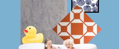 Het Concrete Elements-wandpaneel in de Linda Barker-collectie is een goed begin voor een mooie kinderbadkamer; plaats de panelen zowel achter het bad als achter de wastafel voor het beste effect en eenvoudige reiniging.