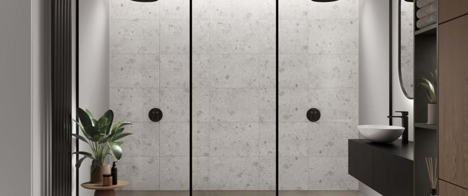 Onze wandpanelen met tegeleffect vormen uw badkamer om tot een strakke, moderne ruimte.