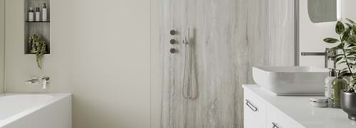 Voor rijke, aardse tinten bieden onze bruine wandpanelen voor de badkamer een reeks luxe-opties met graniet, hout en steen. Combineer ze met Taupe Grey uit de Pure-collectie.