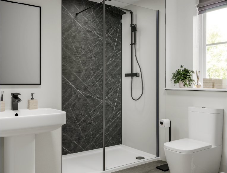 Onze collectie zwarte wandpanelen voor de badkamer zorgt voor een donkere, verfijnde look geeft diepte aan elk ontwerp. Met graniet, marmer en leisteen brengt u materialen uit de natuur in uw badkamer zonder gedoe met voegsel.