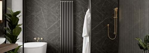 Deze collectie grijze wandpanelen voor de badkamer omvat luxe afwerkingen zoals hout, steen en beton, voor een chique resultaat in uw afgewerkte badkamer.